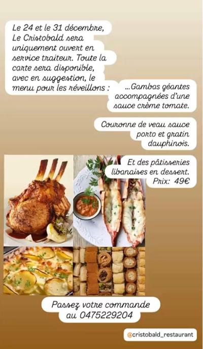 "Le Beyrouth" de la rue du Lombard. Le Cristobald est avant tout une véritable histoire de famille. Tous les plats y sont préparés de façon artisanale dans le respect des traditions orientales et libanaises en particulier.